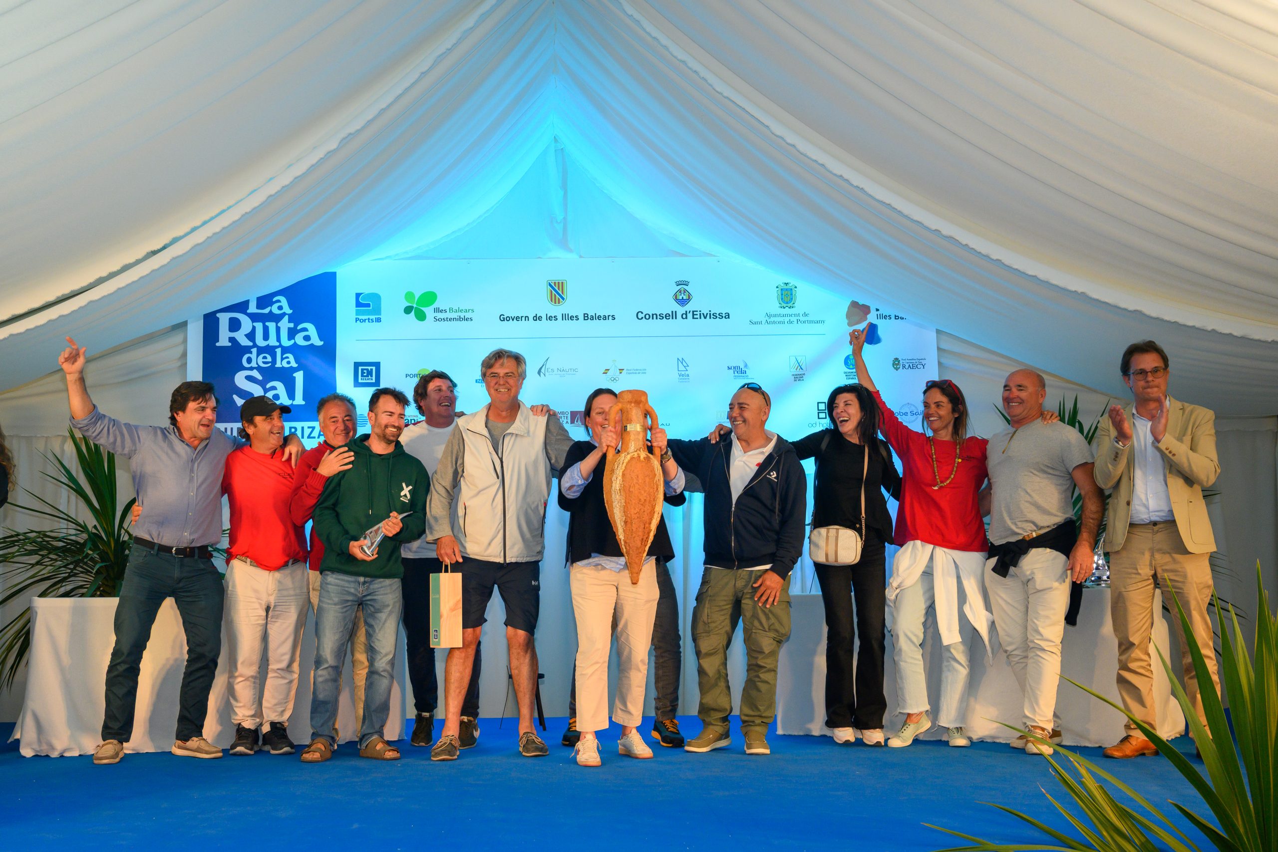 Salvador Losa, conseller de Presidencia y Deportes del Consell de Eivissa, hizo entrega de las míticas ánforas, auténtico símbolo de la victoria absoluta en esta histórica regata de altura: La Ruta de la Sal Rumbo Ibiza.